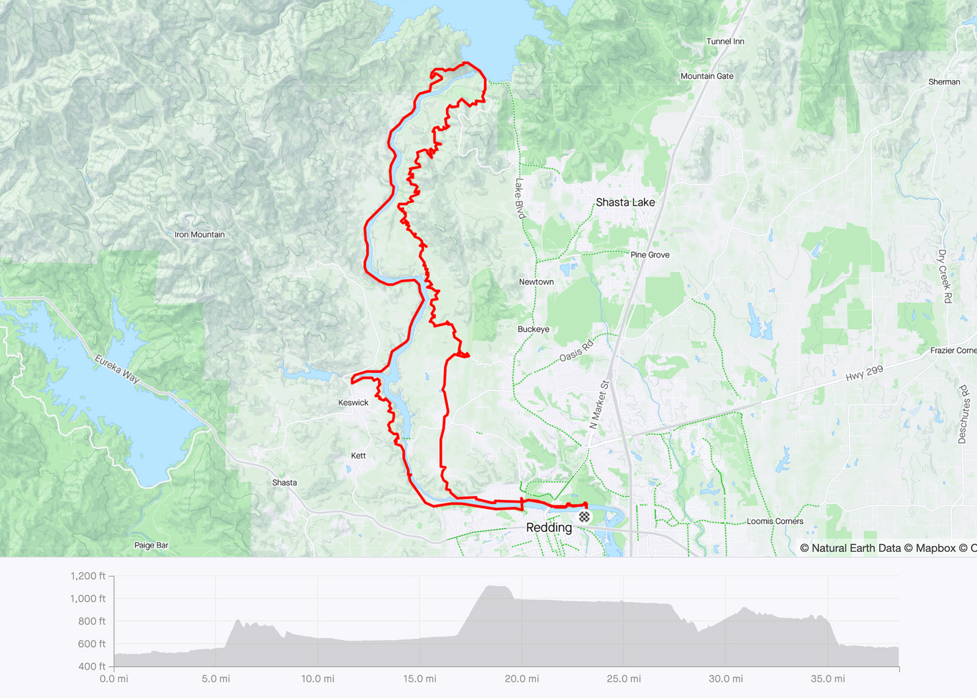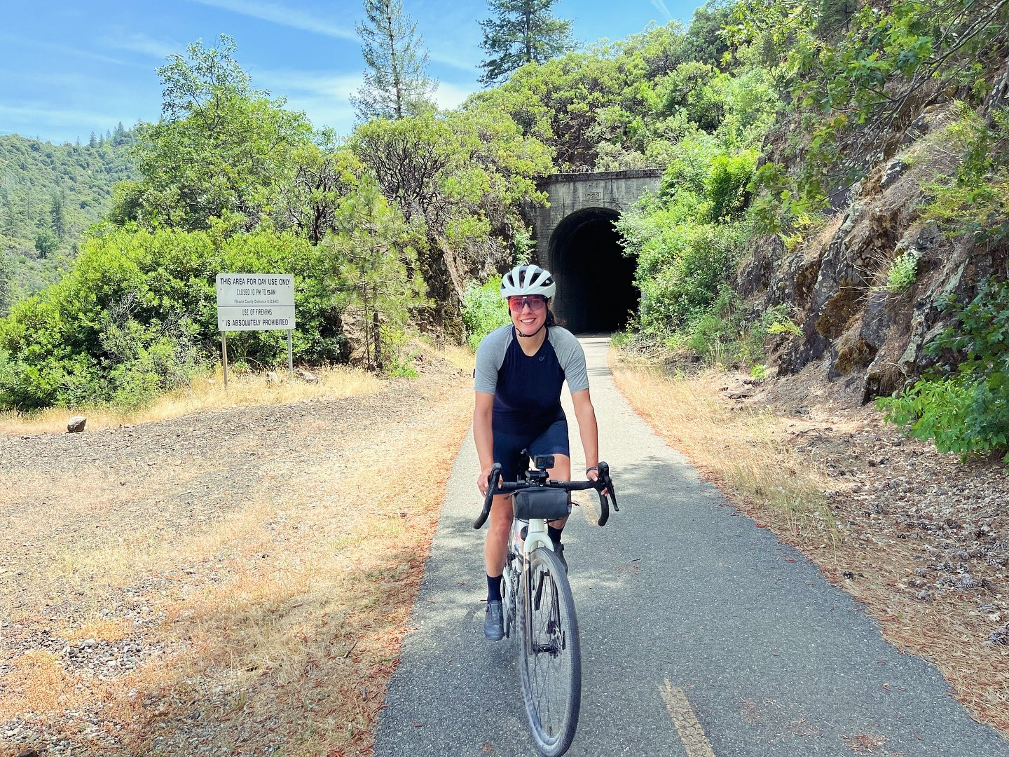 Starting from the Sundial Bridge, the first 16 miles are along the Sacramento River Trail, a beautiful and scenic paved path that doesn’t feel like your typical trail. It starts off easy as you leave downtown Redding, but soon takes you up some steep grades and through the hills surrounding the Keswick Reservoir. After passing through an old railroad tunnel, the path flattens out and parallels the river once again.